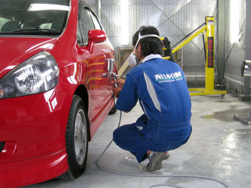 大切な愛車に傷が付いてしまうと気分も沈みがちになりますよね。そんなときはお任せください!西日本自動車には、お客様のための自社板金塗装工場があります。